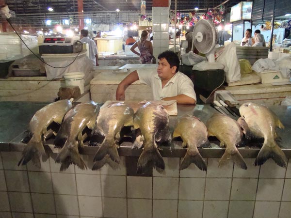 We went on a little tour of the City of Manaus which was interesting but a little rushed… the best part of it was walking through the market place. I had never seen so many mangoes, papayas, bananas, watermelons and about 100 kinds of fruits and vegetables that I could not even identify… then there was the fish market too. I have heard that the Amazon supports 2000 species of fish (I also heard 3000 but who knows what’s true?)… either way, it’s a lot! The marketplace was super colorful but I could have strolled around there all day enjoying the sights and sounds… as it was we only spent about 20 minutes. Because of our late arrival our trip around the City was pretty rushed since, so really we just glimpsed the City. But that’s ok.