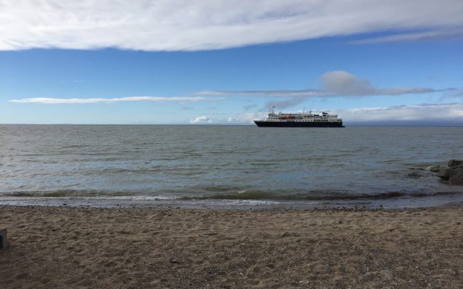 After sailing for a day and a half we arrived at Pond Inlet at the North end of Baffin Island. Baffin Island is 950 miles long and about 450 wide with a total population of about 19,500. At Pond Inlet we are at latitude 72 which is 300 miles North of the Arctic Circle. Now it is evening tho’ the sun is brightly shining and we have departed Pond Inlet heading North again. It’s hard to imagine living in a place like Pond Inlet tho’ the people we met were lovely and mostly spoke English. The total population is under 2000 and is 95% Inuit, there are no trees or pavement and, for the most part it is a community of hunters & fishermen… they are hard workers and are determined to preserve their Native culture.