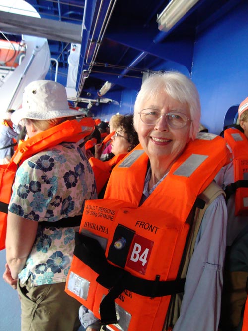 As I write Lois has gone down to find out where the Health Clinic is so that we’ll know where to get the motion sickness meds if we need them… in about 30 minutes we are supposed to have a safety drill where we take our life vests and go out on deck next to the Life Boat we are assigned to so that we can learn what to do in the event of an emergency. Should be interesting.