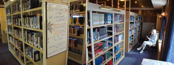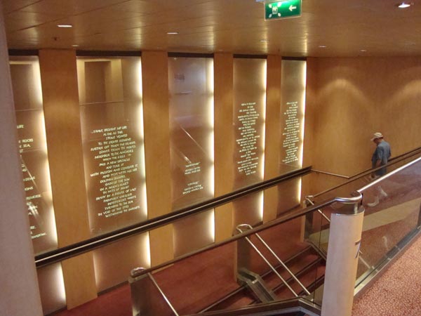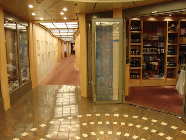 Ship's central area...upstairs is library & computer lab. Downstairs is Purser's desk and general info. center.